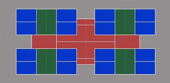 Op een tennisbaan passen maar liefst 4 pickleballbanen! Dus niet maximaal 4 spelers, maar 16 spelers op hetzelfde moment. Verhoog dus je bezettingsgraad door de M²'s beter te benutten